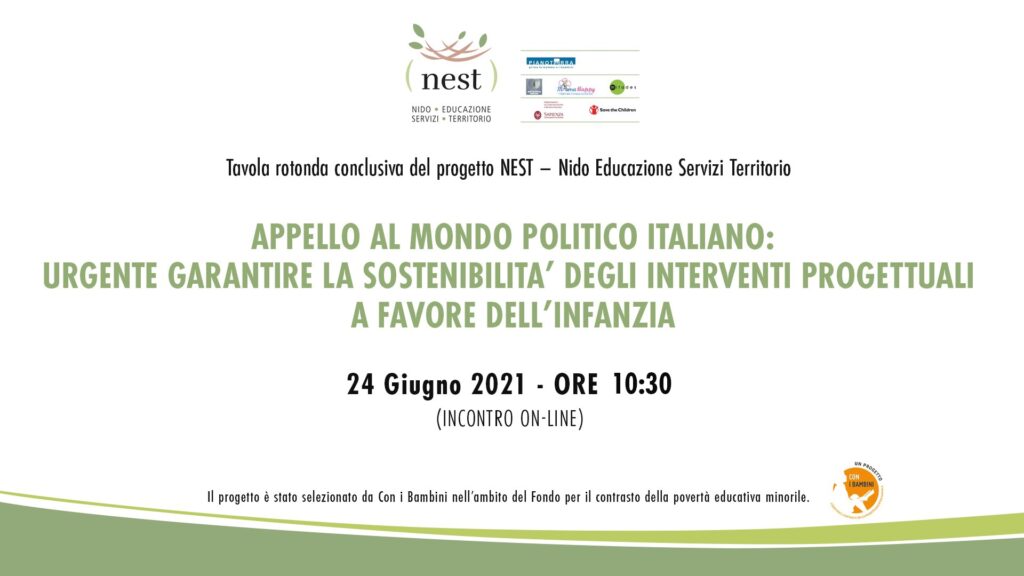Si conclude dopo tre anni di attività il progetto NEST – Nido Educazione Servizi Territorio, un’iniziativa di progettazione partecipata nazionale per contrastare la povertà educativa minorile in quattro città italiane: Napoli, Roma, Bari e Milano.